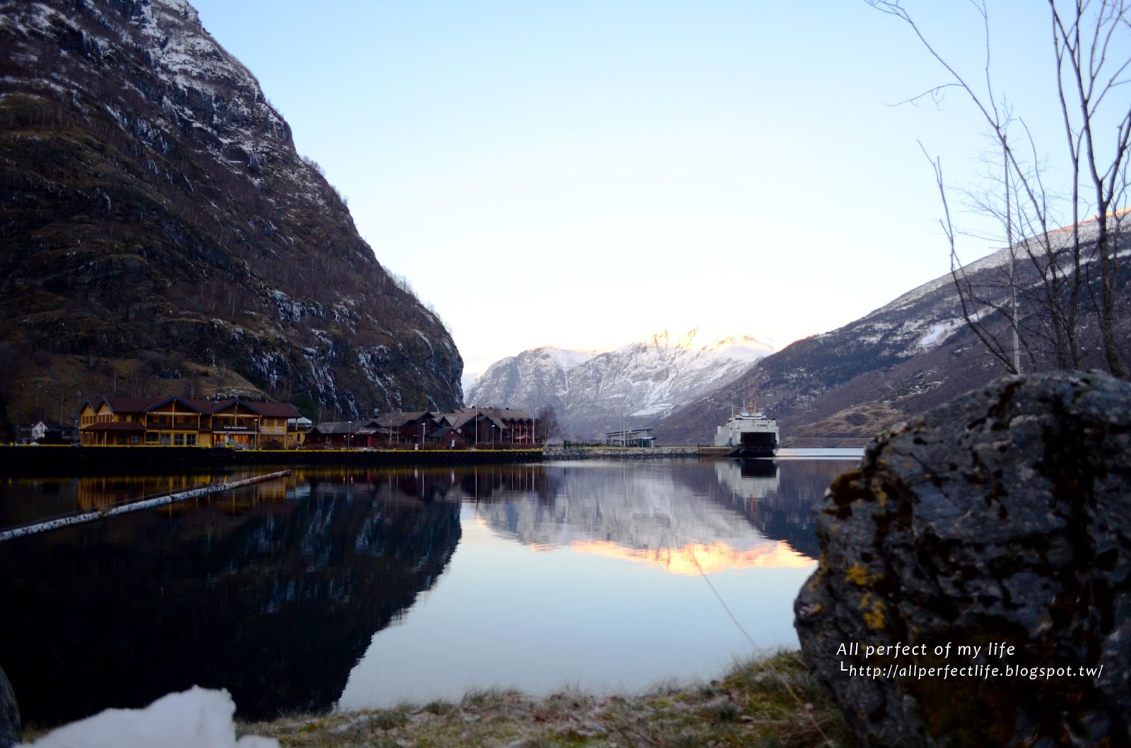 挪威縮影行程 Oslo -> Bergen 歷時2天(2/13~2/14),一停留點Flåm小鎮的河畔小木屋